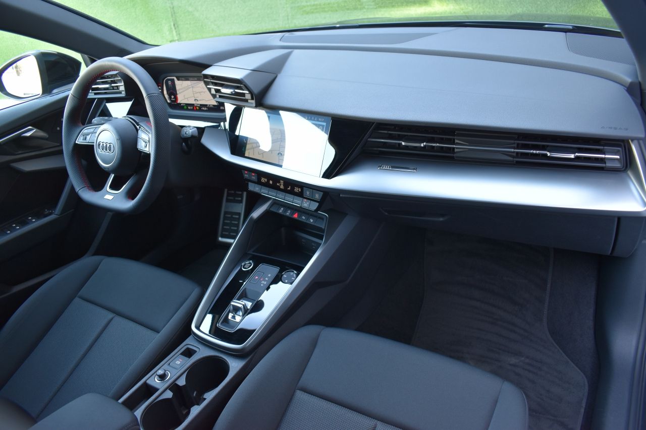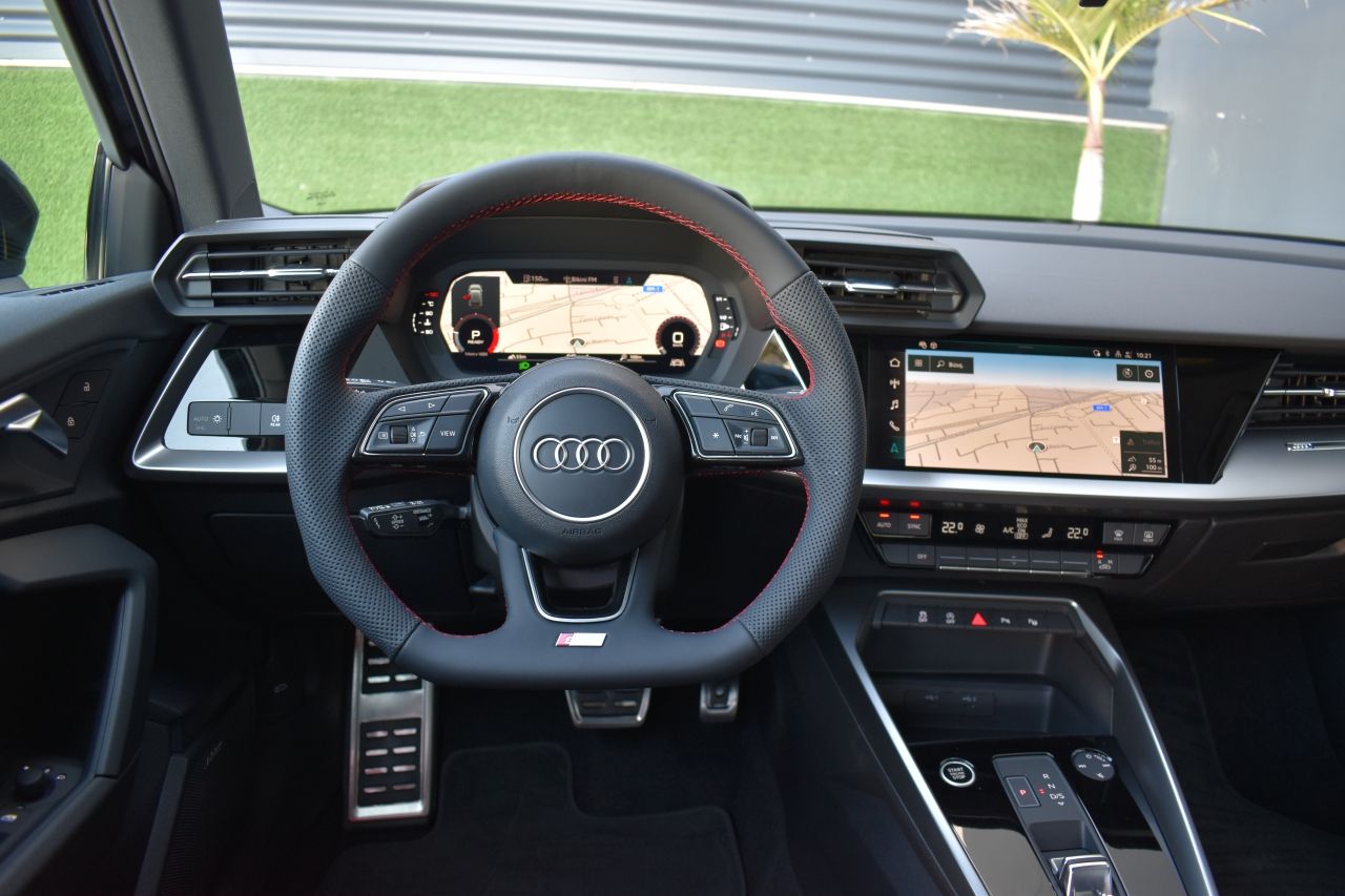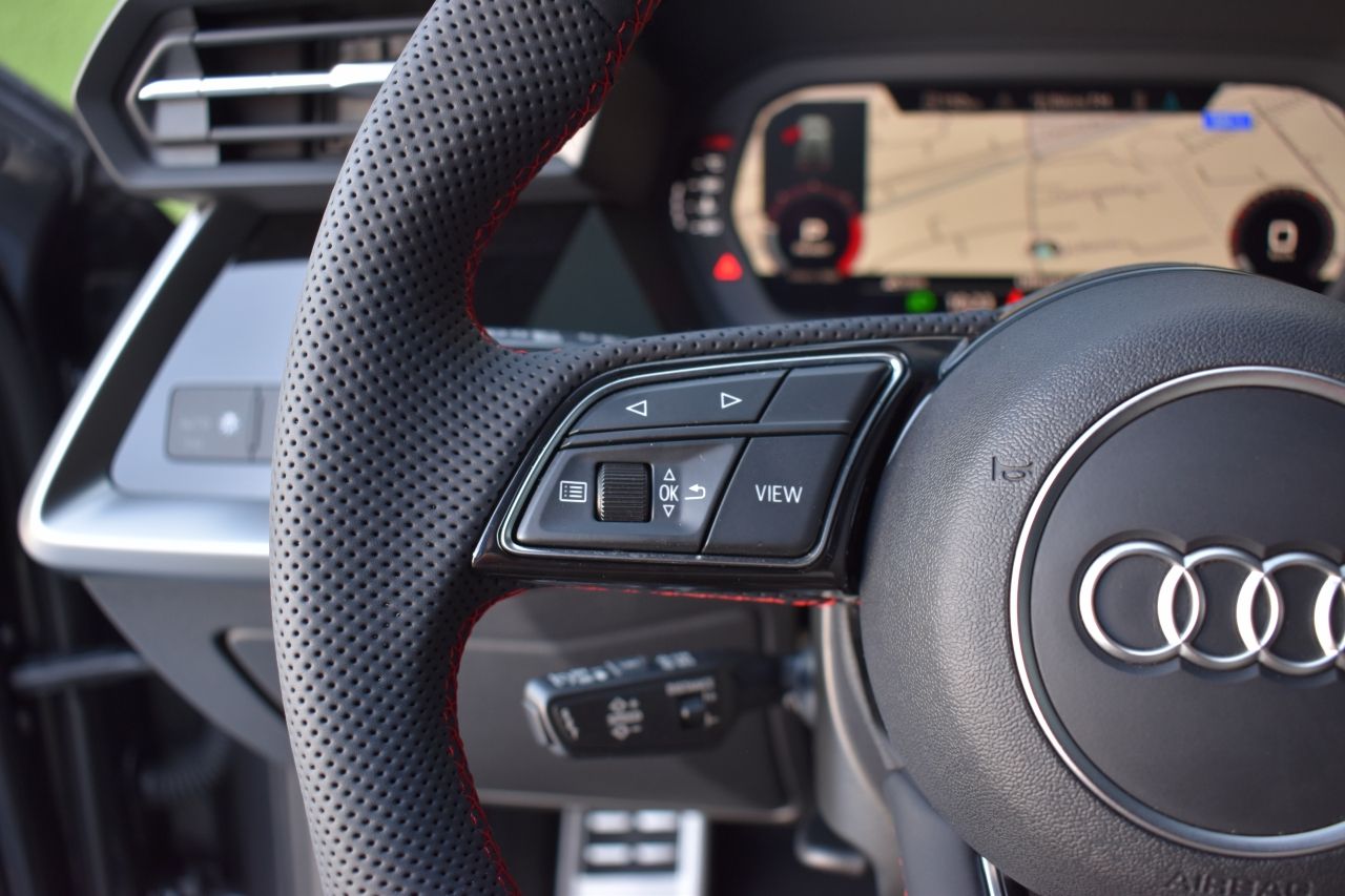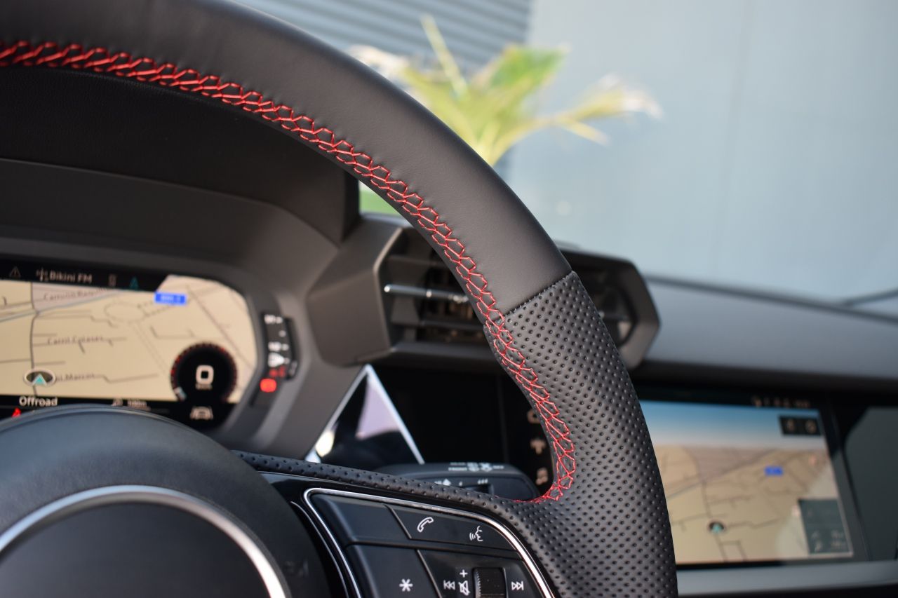 • Volante de cuero deportivo multifunción S line, parte de abajo achatado